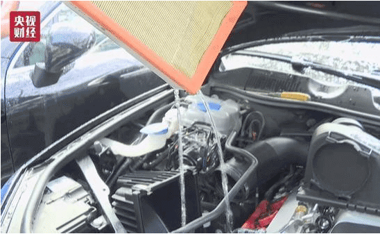 为了找到原因,这位女车主决定做一个试验,她把水从车前部浇下去,让她没有想到的是,水沿着引擎盖和右前大灯的缝隙流进了发动机的进气口。这位女车主认为,途锐汽车进气口位置的设计是导致发动机进水的重要原因,她决定再去找4S店讨个说法。